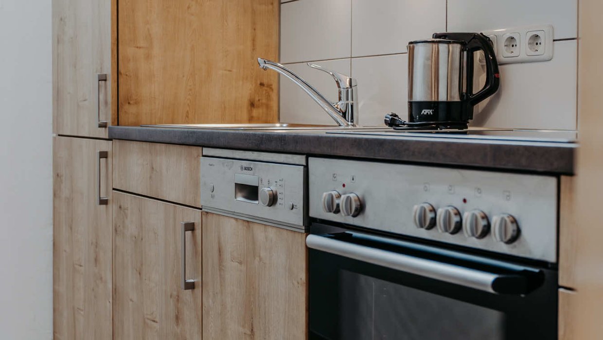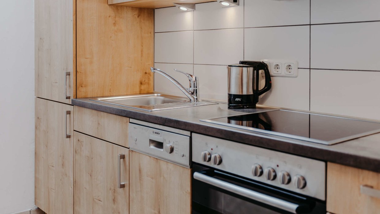 Die kleine, seperate Küche verfügt über alles was Sie benötigen: Geschirrspüler, Kaffeemaschine, Wasserkocher, Toaster, usw. Die Gebrauchsartikel wie Spüli, Seife, 00-Papier sind alle inklusive.