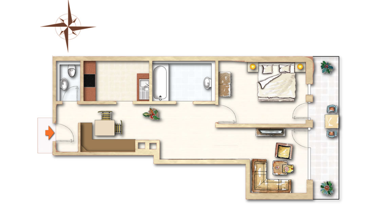 Das separate Schlafzimmer bietet einen ruhigen Rückzugsort für erholsame Nächte. Der weitläufige Wohnraum mit großer Couch und gemütlicher Essecke lädt zum Ankommen ein: Ob gemeinsames Frühstück, Lesen am Nachmittag oder ein ruhiger Abend nach einem aktiven Tag – hier ist Platz für Entschleunigung. Ein eigener Safe sorgt für zusätzliche Sicherheit während Ihres Aufenthalts.